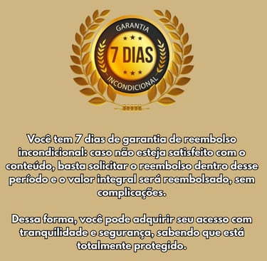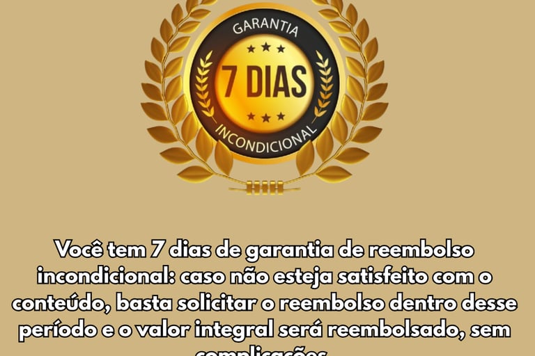 Oferecemos garantia incondicional de 7 dias — se não ficar satisfeito, basta enviar um e-mail solicitando o reembolso e devolvemos 100% do valor, sem burocracia.